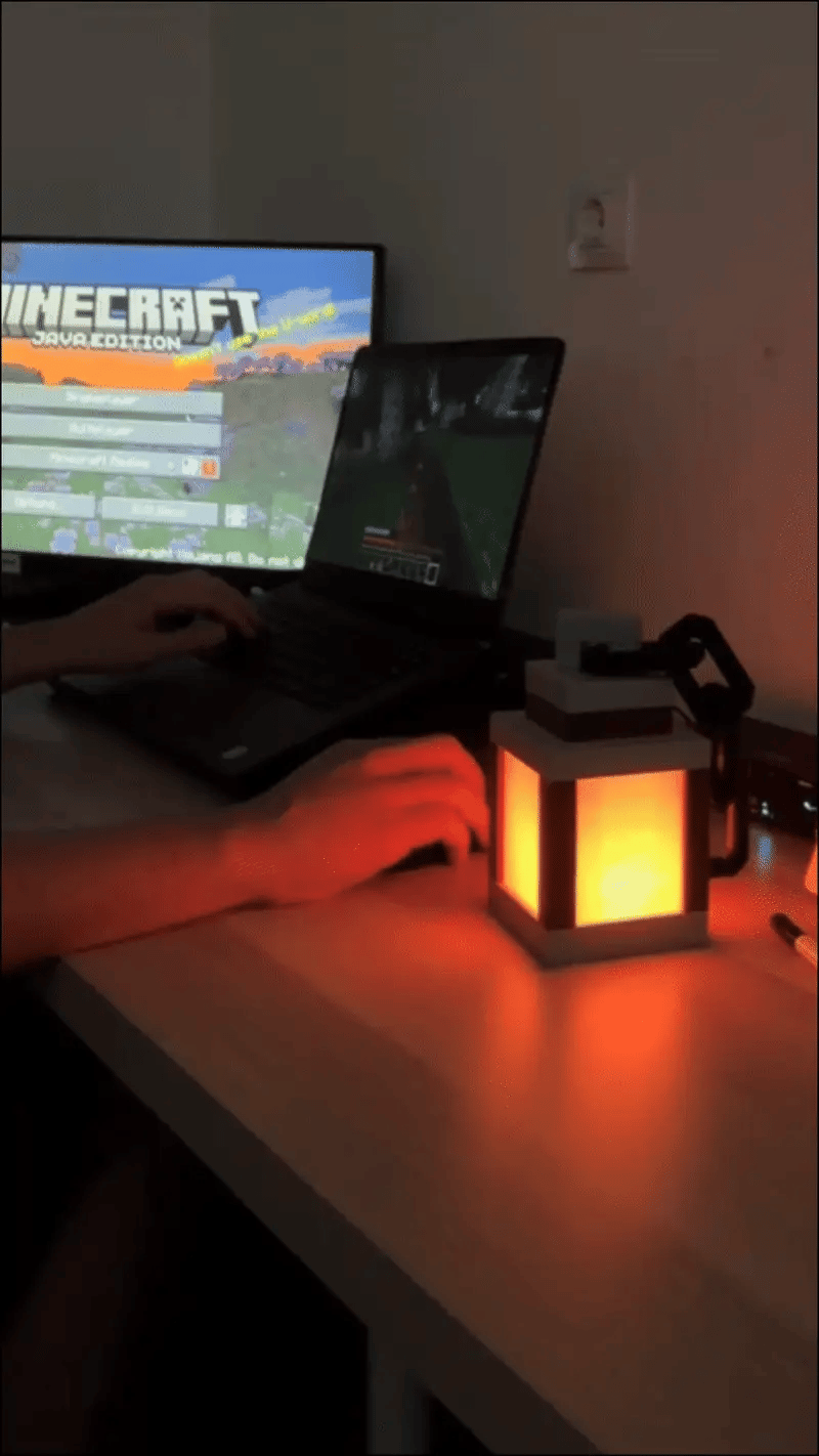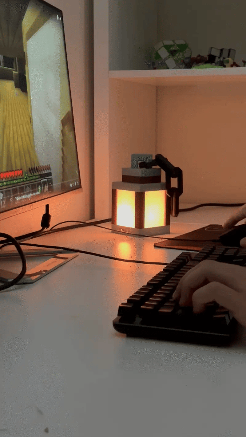 ahogy pulzál a narancsos, lávaszerű fény, az egész asztalod megtelik a kaland hangulatával. A masszív, “blokkszerű” design pedig a Minecraft ikonikus stílusát idézi, így bármely gamer-setup látványos eleme lesz
